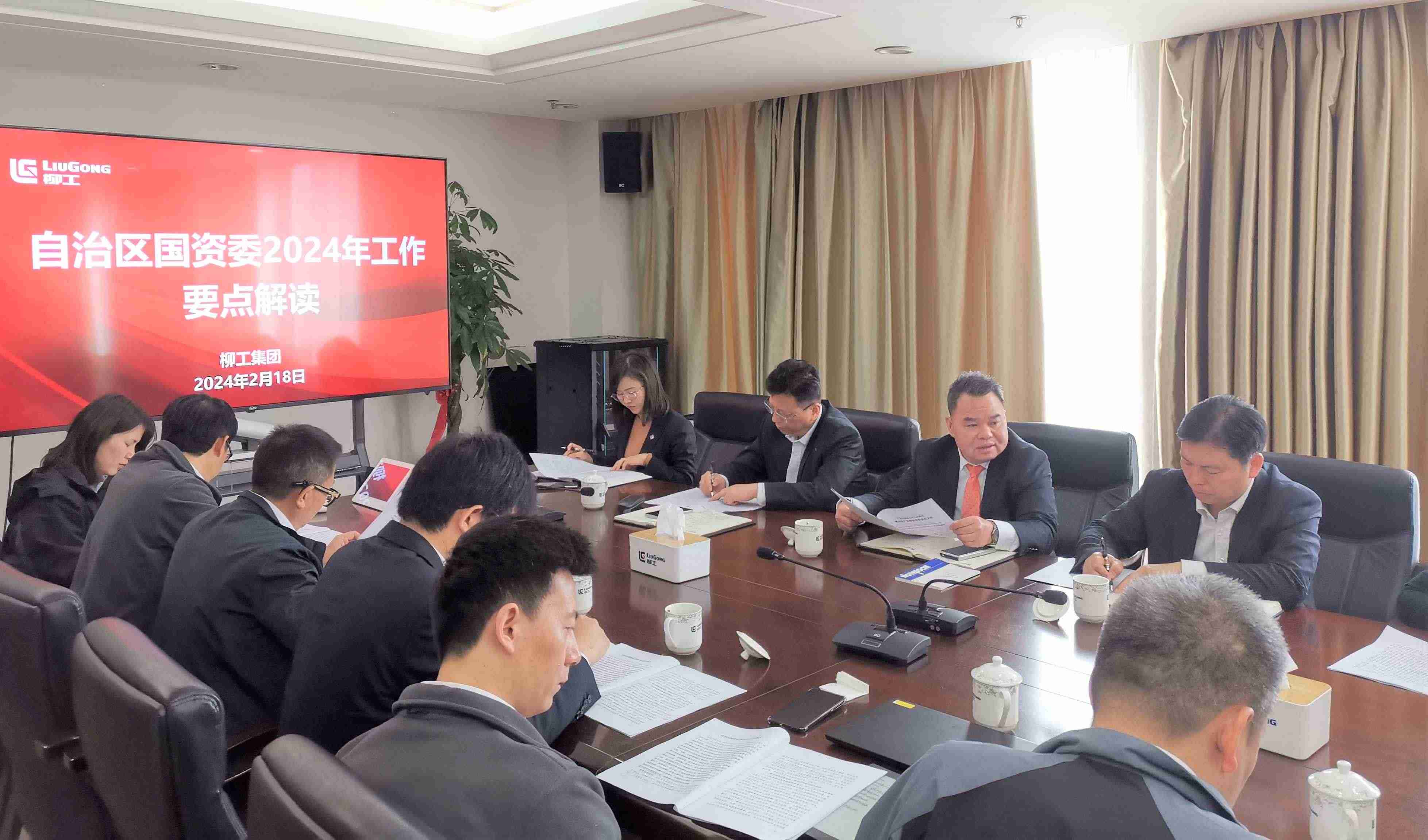 新年伊始,萬(wàn)象更新。2月18日上午,春節(jié)收假后的第一個(gè)工作日,廣西柳工集團(tuán)有限公司召開(kāi)自治區(qū)國(guó)資委2024年工作要點(diǎn)解讀專題會(huì)議,傳達(dá)學(xué)習(xí)相關(guān)文件精神,并深入研究貫徹落實(shí)舉措。廣西柳工集團(tuán)有限公司黨委書(shū)記、董事長(zhǎng)鄭津主持會(huì)議,黨委副書(shū)記、副董事長(zhǎng)、總經(jīng)理王太平,黨委副書(shū)記、紀(jì)委書(shū)記、工會(huì)主席賴頌平,董事會(huì)秘書(shū)、行政總監(jiān)左芳等領(lǐng)導(dǎo)班子成員出席會(huì)議,職能部門(mén)總監(jiān)以及子公司運(yùn)營(yíng)相關(guān)負(fù)責(zé)人參加會(huì)議。