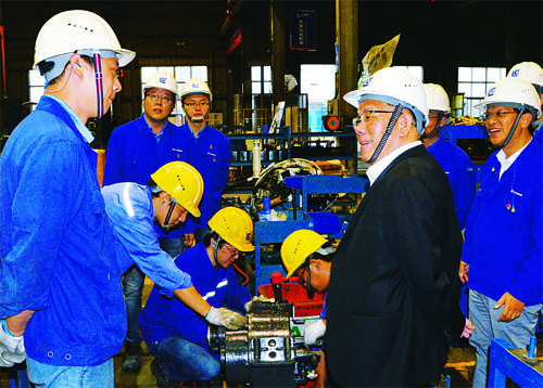 10月20日下午,公司黨委書記、董事長(zhǎng)曾光安到江蘇柳工檢查并指導(dǎo)工作。曾光安視察了江蘇柳工的生產(chǎn)現(xiàn)場(chǎng),詳細(xì)了解了相關(guān)情況,同時(shí)對(duì)現(xiàn)場(chǎng)一線員工進(jìn)行了親切慰問,提醒他們要注意安全,確保安全生產(chǎn)。