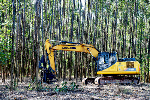 陪同的黨建元給我們介紹,這是莫吉瓜蘇區(qū)域比較大的林場(chǎng),專為International paper公司提供造紙?jiān)系幕?,而柳工的工程機(jī)械設(shè)備,在林場(chǎng)主要承擔(dān)的工作是木材砍伐和裝運(yùn),可以說(shuō)是這個(gè)林場(chǎng)里的主要“勞動(dòng)力擔(dān)當(dāng)”。