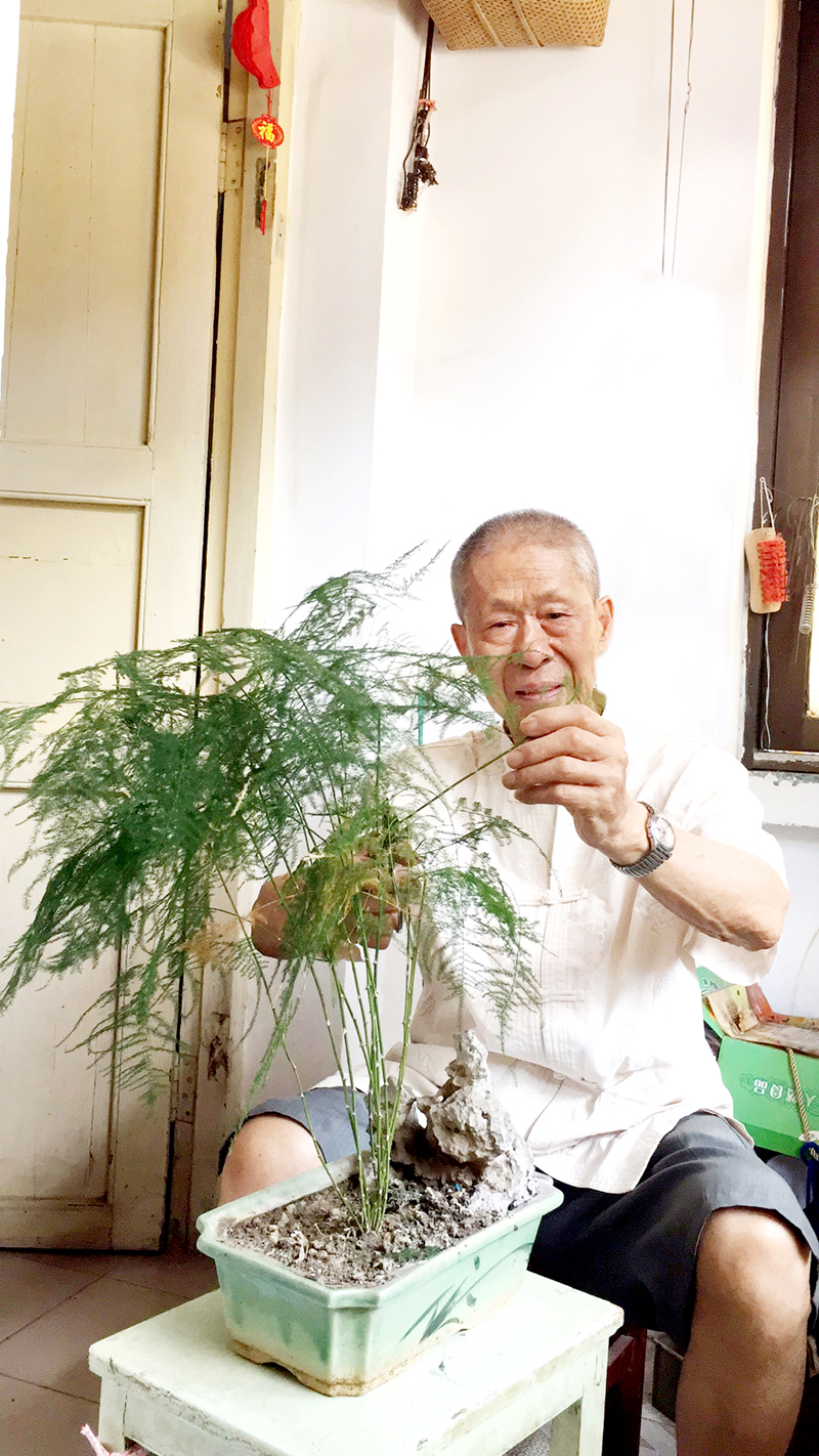 退休在家的吳富龍?jiān)谒排柙?