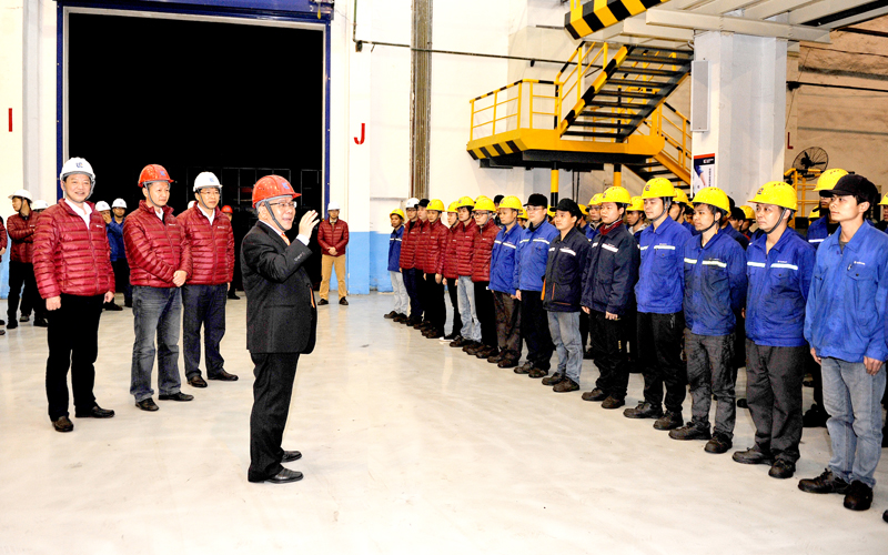 在剛下線的CLG8128H大型裝載機一側(cè),曾光安與列隊慶祝勝利的裝配線員工一一握手,他感謝大家為勝利奪取“1899戰(zhàn)役”付出的辛勤工作。曾光安在講話中高度贊揚柳工人是英勇頑強、堅不可摧的鋼鐵戰(zhàn)士。他說,“1899戰(zhàn)役”只是個熱身,2018年我們會迎來更大的挑戰(zhàn)。他對裝載機公司全體員工提出了五個方面的要求:一是打好新年開門紅的新戰(zhàn)役,為2018年挑戰(zhàn)更高產(chǎn)量目標做好充分的準備。二是努力提升工作效率和降生產(chǎn)運營管理成本。他說,裝載機的盈利水平還有很大空間,成本控制是公司的重要工作之一。三是抓好產(chǎn)品質(zhì)量這根主線,2018年我們的產(chǎn)品質(zhì)量在現(xiàn)有基礎(chǔ)上要有更大的改善和提升。四是嚴把產(chǎn)品交貨期。要吸取2017年因進口件及供方配套件不及時帶來的訂單流失的教訓,在保證產(chǎn)品質(zhì)量的同時,嚴格按客戶指定的時間交貨,真正體現(xiàn)柳工是一家高質(zhì)量、高水平、高誠信的制造企業(yè)。五是努力打造一支懂管理、懂技術(shù)的年輕管理者人才隊伍,同時要重點培養(yǎng)生產(chǎn)一線員工中的大師級人才隊伍,讓年輕的新生力量成為有想法、有闖勁、勇?lián)數(shù)募夹g(shù)型工人隊伍。