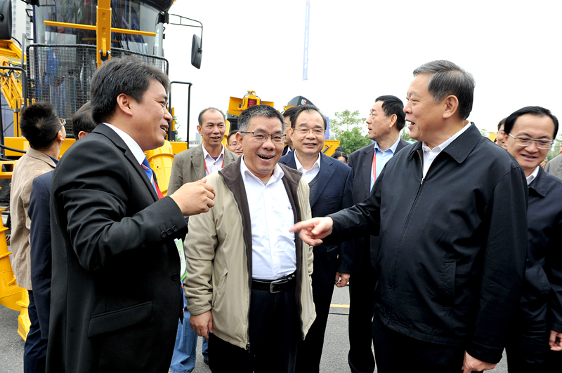 開(kāi)幕式結(jié)束后,曾光安陪同張秀隆來(lái)到柳工展區(qū)觀摩了甘蔗收集轉(zhuǎn)運(yùn)車(chē)的現(xiàn)場(chǎng)演示。曾光安詳細(xì)地介紹了柳工農(nóng)機(jī)公司有關(guān)現(xiàn)代化農(nóng)業(yè)裝備制造的發(fā)展布局及應(yīng)用推廣情況,尤其是甘蔗生產(chǎn)全程機(jī)械化的發(fā)展情況。張秀隆肯定了柳工農(nóng)機(jī)產(chǎn)品的發(fā)展,并鼓勵(lì)柳工向國(guó)際高端農(nóng)機(jī)機(jī)械品牌看齊,盡快將各系列農(nóng)用機(jī)械投入市場(chǎng),推動(dòng)廣西甘蔗生產(chǎn)機(jī)械化的水平。